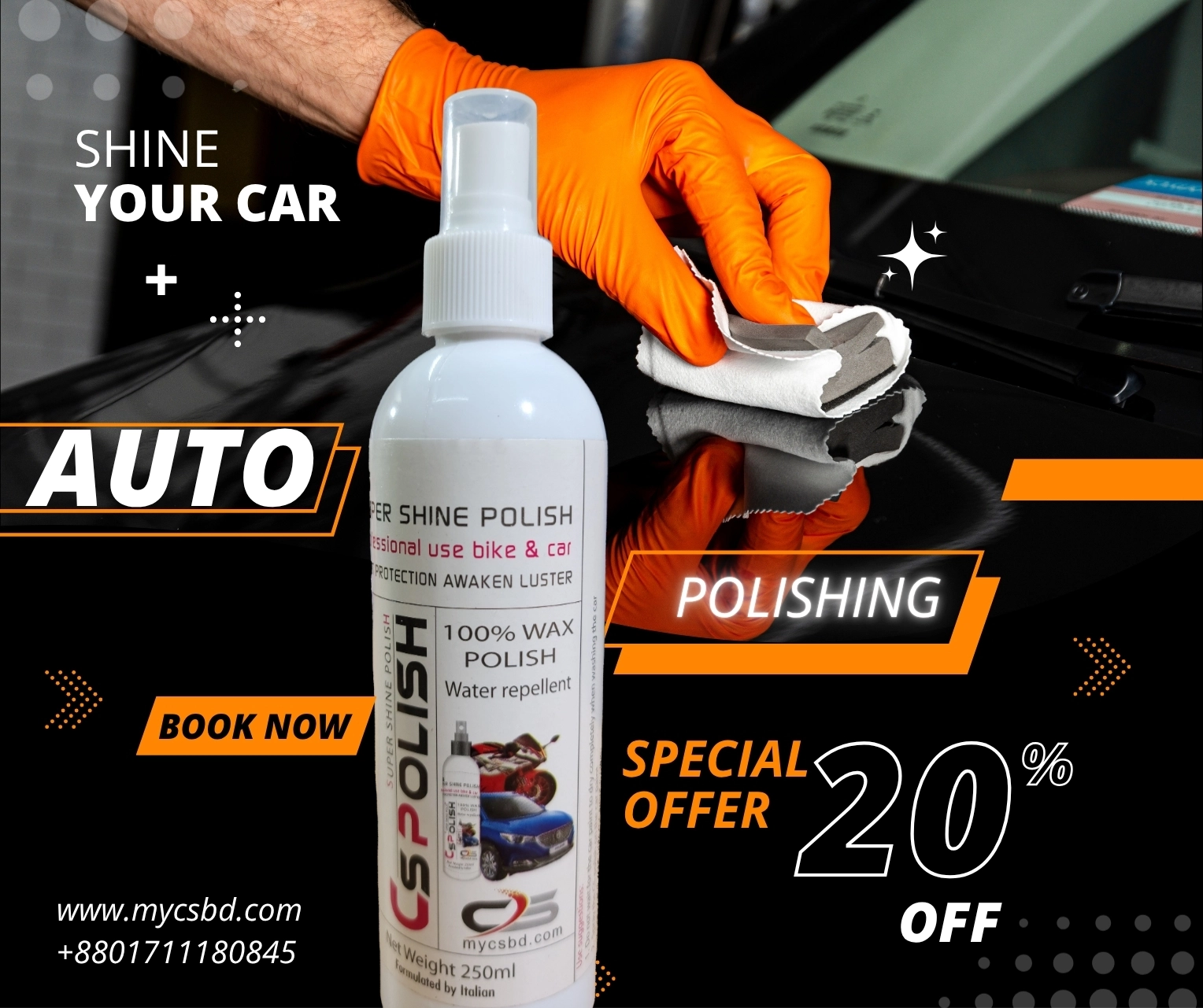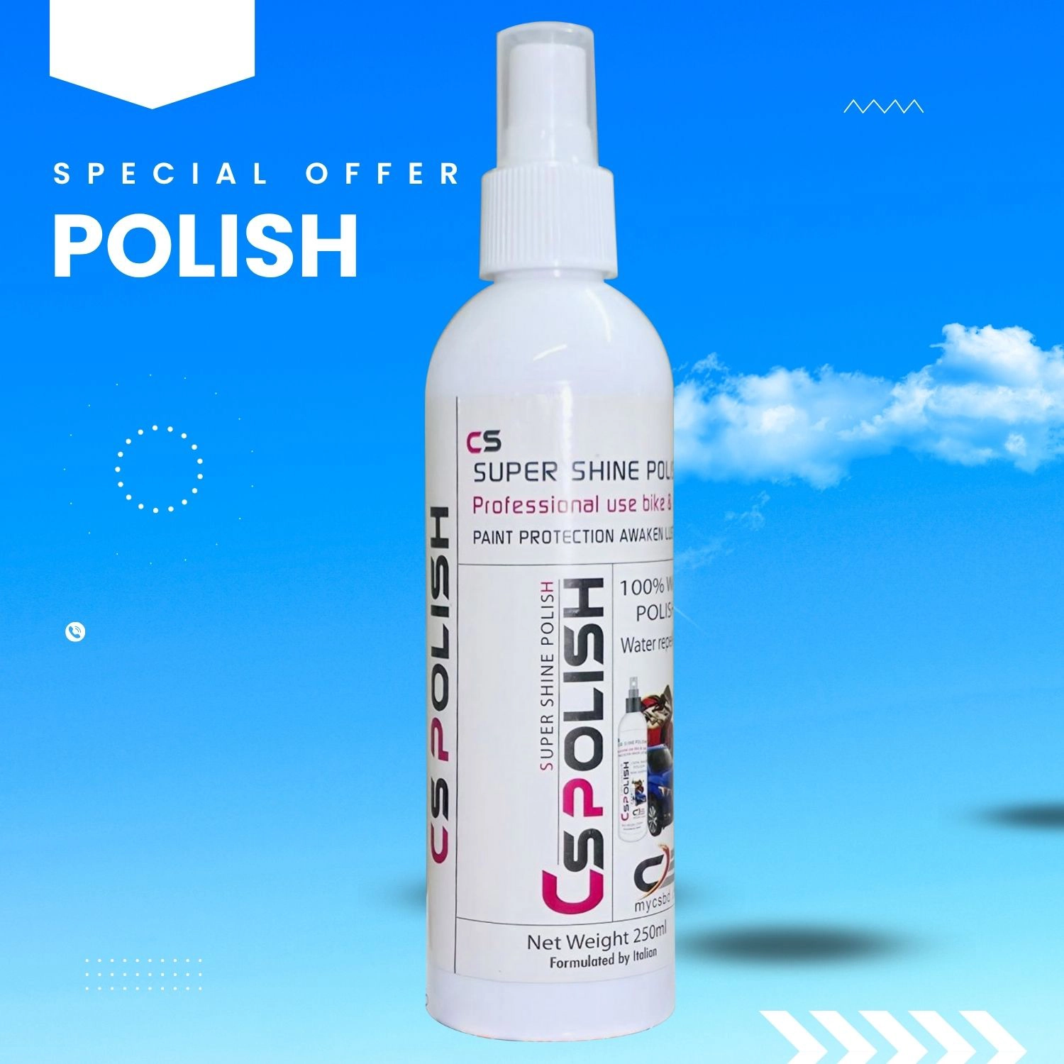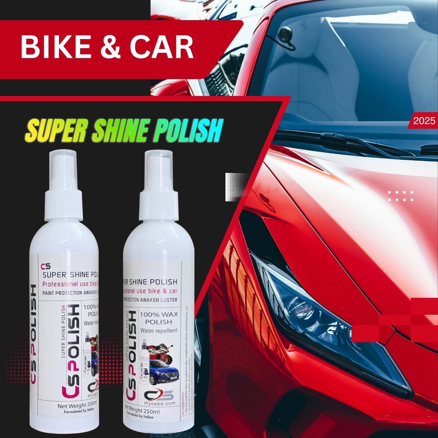 CS Super Shine Polish হলো এক প্রিমিয়াম মানের ১০০% ওয়াক্স বেসড পলিশ যা আপনার গাড়ি বা বাইকের পেইন্টে দেয় আয়নার মতো চকচকে উজ্জ্বলতা ও দীর্ঘস্থায়ী সুরক্ষা। এই পলিশ বিশেষভাবে তৈরি করা হয়েছে পেশাদার ও ব্যক্তিগত ব্যবহারের জন্য, যা সহজে ব্যবহারযোগ্য এবং দ্রুত ড্রাই হয়। এটি পানিরোধী (Water Repellent) ফর্মুলা যা বৃষ্টির পানি, ধুলো, ও সূর্যের আল্ট্রা ভায়োলেট রশ্মি থেকে রক্ষা করে আপনার গাড়ির পেইন্টকে নতুনের মতো রাখে।